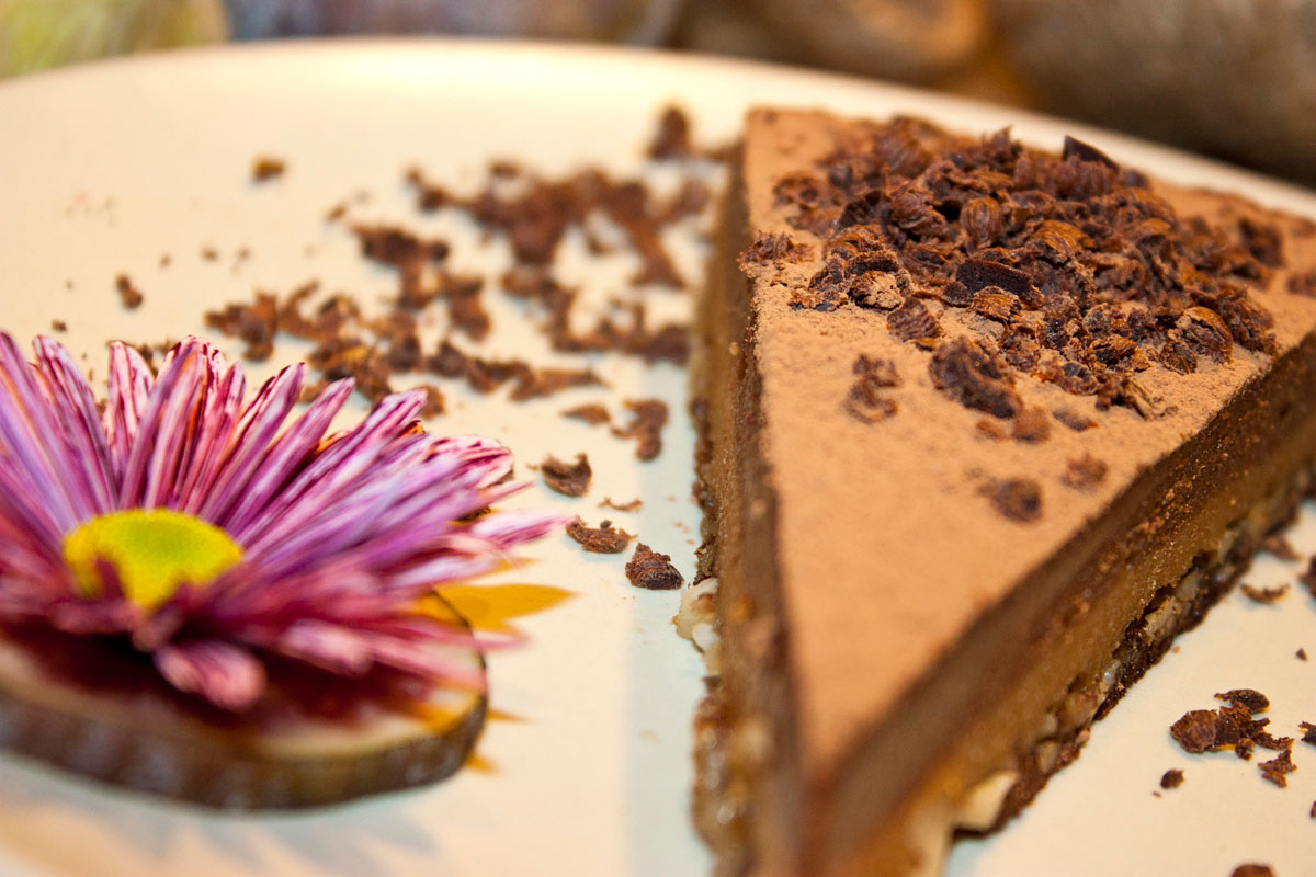“Fig Surprise” fíkovo-čokoládový raw dort s kakaovým posypem