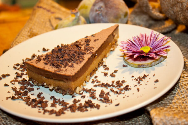 “Fig Surprise” fíkovo-čokoládový raw dort s kakaovým posypem